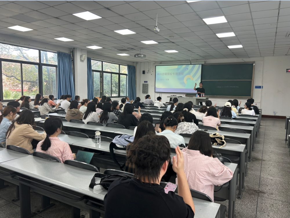 9月19日上午,考研指导讲师王潇来到四川师范大学法学院,为2022级的同学们带来了一场题为“法硕的择校方法指导”的专题讲座。本次讲座在狮子山校区第六教学楼309教室举行,由法学院学生工作办公室主任、分团委书记熊胤主持,法学院2022级80余名法硕备考生参加。
