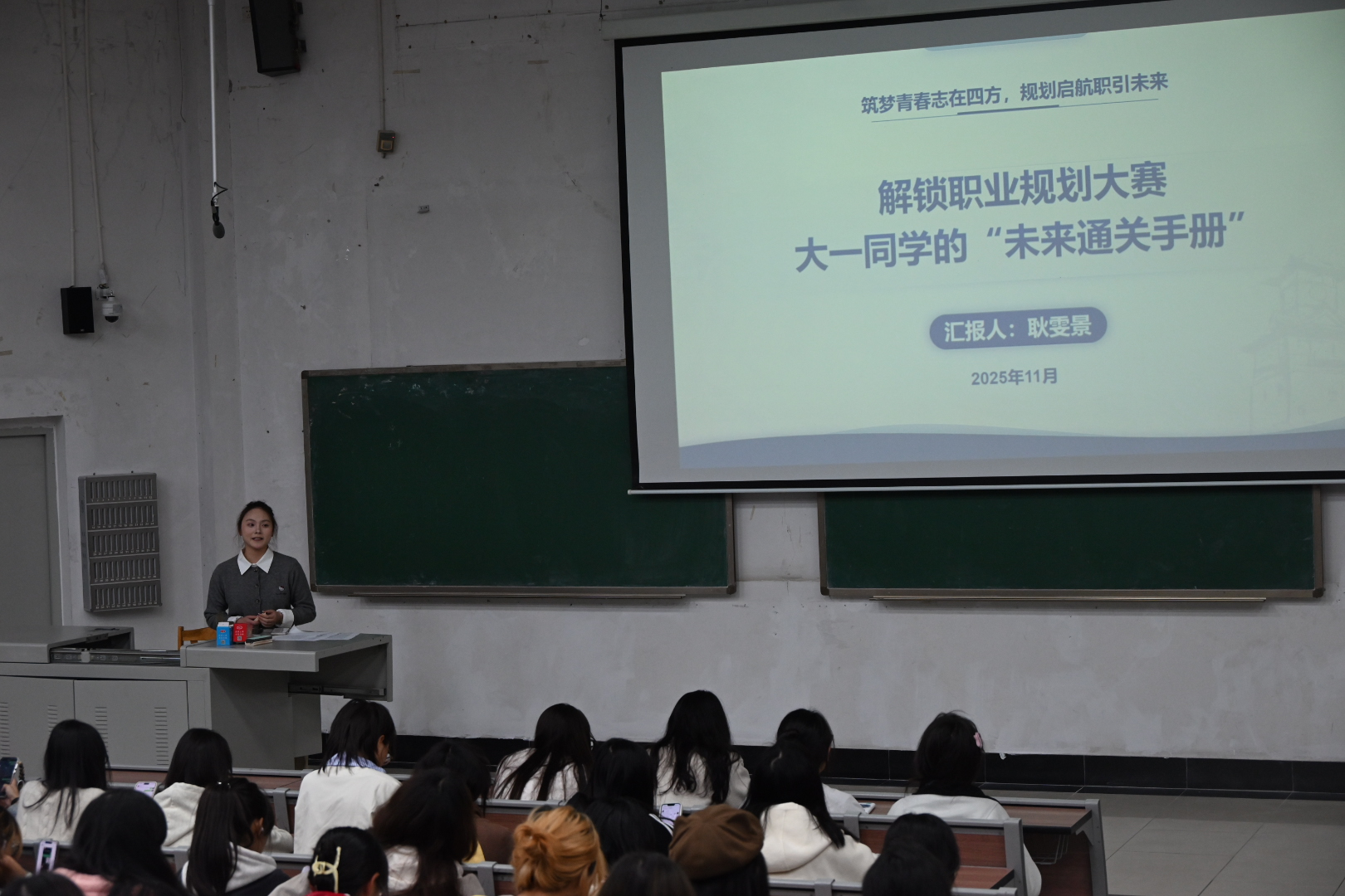 2025年11月16日19:00,面向四川师范大学法学院大一新生的“解锁职业规划大赛——大一同学的未来通关手册”专题讲座成功举办。来自化学与材料科学学院的耿雯景学姐担任主讲人,为现场大一新生带来了一场兼具实用性与指导性的职业规划备赛盛宴。本次讲座由25级4班姚杨宇涵主持。