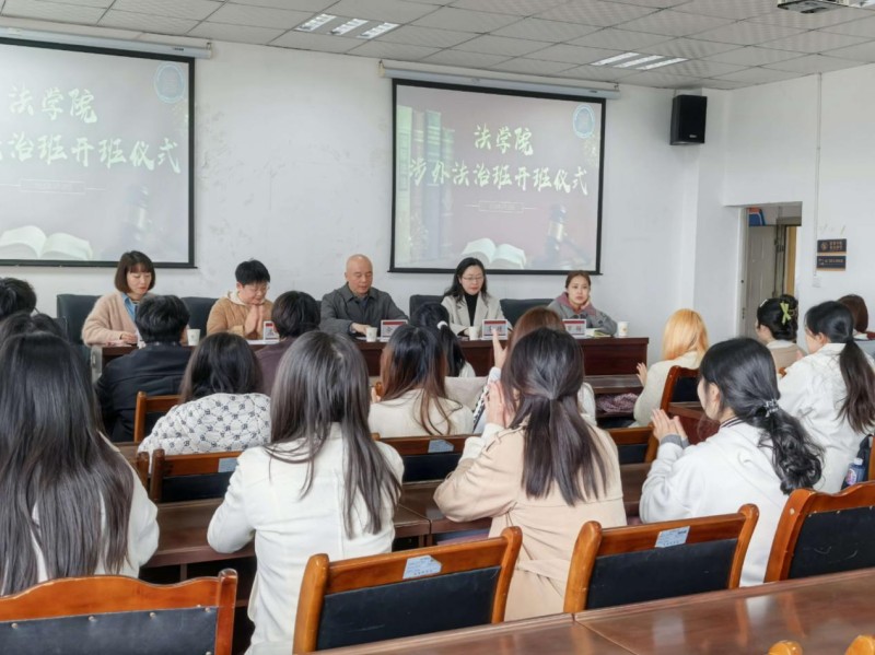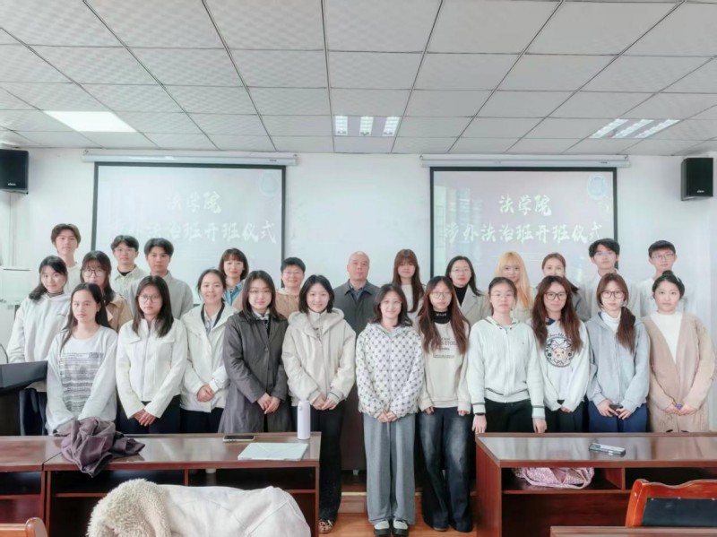 2026年3月18日,法学院涉外法治特色班开班仪式在狮子山校区第六教学楼914教室举行。学院党委书记余华教授,党委副书记、李瑾副教授,导师代表孟昭华副教授、辅导员罗梅老师以及涉外法治特色班20名学生参加开班仪式,学院教务办主任鄢玲老师主持本次活动。