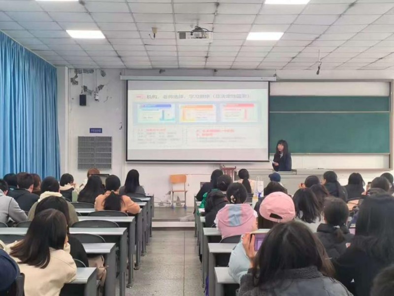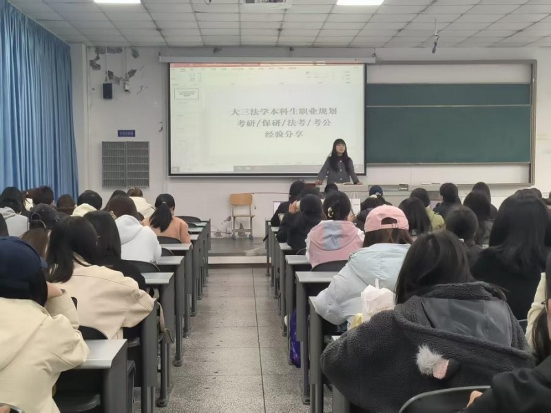活动前期面向全体学生征集了考研、保研、法考、考公及学业发展相关的疑问与困惑,系统梳理形成问题清单,在分享会上,各位嘉宾结合自身经验与专业视角,依次开展针对性指导。考研备考指导方面,辅导员瞿洁以“选择比努力更重要”为核心,讲解法学考研全流程规划与应试方法,结合历年学院考研与保研数据,分析院校层次、地域选择等关键因素,提醒学生理性定位、避免盲目扎堆,合理设置冲刺与保底院校,同时就备考心态、节奏把控与支持系统给出实用建议,为考研学生提供科学备考指引。