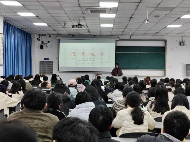 考公备考方面,朱岚学姐聚焦公务员考试应试策略与备考要点进行讲解。她全面梳理考试考情、题型分布与模块备考重点,针对资料分析、判断推理、言语理解、政治理论等核心模块,分享了实用的方法技巧、刷题训练模式与日常积累方式。同时,还就岗位选择、面试准备、应试心态等学生普遍关切的问题给出了切实可行的建议,帮助同学们理清备考思路,精准把握备考关键。