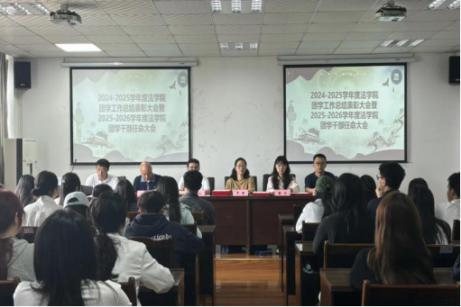9月25日,法学院2024-2025学年度团学工作总结表彰大会暨2025-2026学年度团学干部任命大会在第六教学楼九楼914会议室召开。法学院院长陈山,党委副书记、纪委书记李瑾,副院长余华,学生工作办公室主任、分团委书记熊胤,2023级辅导员瞿洁,2024级辅导员张杰和全体团学干部参加本次会议。