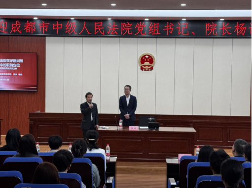 滕文浩代表学校对杨诚院长的到来表示热烈欢迎。他指出,矛盾纠纷多元化解是推进基层治理现代化的关键环节,成都中院作为司法实践前沿阵地,积累了大量可复制、可推广的宝贵经验。期待通过搭建“司法实践+高校研究”的交流平台,助力师生跳出固有理论框架,校地协同联合培养法治人才。