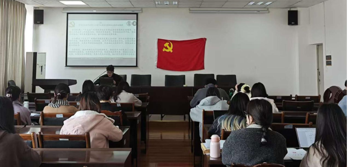 活动首先由研究生第一党支部曹鑫同志与第二党支部陈飞翔、李雪梅同志进行领学。三位同志围绕党的二十届四中全会精神,重点解读了全会审议通过的《中共中央关于制定国民经济和社会发展第十五个五年规划的建议》,系统阐述了“十五五”时期的战略定位、发展目标与重点任务,内容涵盖经济发展、科技自立自强、民生改善、绿色转型等多个关键领域。随后,全体党员集体观看了专题视频《凝心聚力启新程》,并结合法学专业背景,围绕学习贯彻全会精神进行了交流发言。