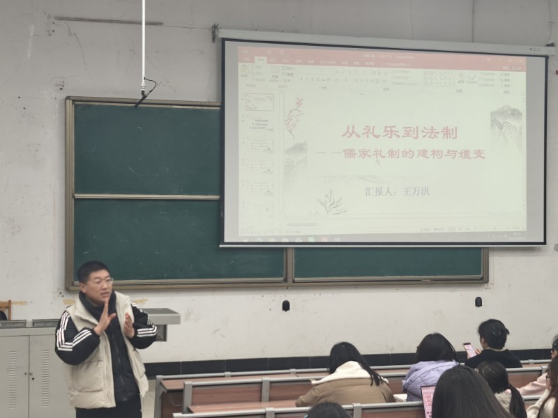 2025年12月17日晚19点,西华大学文新学院教授、硕士研究生导师王万洪老师为同学们带来了一场主题为“由礼乐到法制——儒家礼制的建构与嬗变”的讲座。讲座于四川师范大学狮子山校区第七教学楼114教室举行,由法学院党委副书记、纪委书记李瑾主持,法学院2024级同学百余名学生积极参与,认真学习。