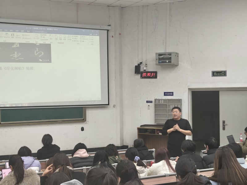 讲座中,王万洪老师为同学们系统阐释了儒家礼制从起源到演变的历史脉络。他首先从儒家的礼乐制度谈起,阐述了由周公制定、到孔子问礼传承、直至春秋战国时期“礼崩乐坏”的历史背景,讲明儒家致力于重建社会秩序的初心。随后,王万洪老师重点分析了儒家诸子与法制精神的关联,他不仅肯定了周公作为制度建设者的奠基作用,孔子身体力行的实践精神,还特别强调了子夏在传承中的关键地位,以及战国末期思想家荀子“礼法并用”思想、李斯和韩非的法家思想对后世的重要影响,揭示了儒家思想内部蕴含的法制基因。在讲述我国历史上著名的变法运动与法制建设运动时,王万洪老师将法学、史学、文学以及书法学相结合,别开生面地讲述了其背后的儒家礼制体现。