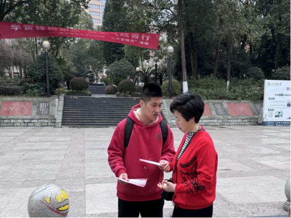 活动开始前,同学们提前抵达现场,有序完成物资搬运、场地布置、资料整理等各项准备工作。活动期间,同学们分为两组,分工协作、紧密配合,扎实开展普法宣传。流动宣传组的同学在广场内向师生发放普法手册,结合典型案例,用通俗易懂的语言讲解法律条文核心内容;法律咨询服务点的同学耐心接待咨询师生,围绕职场性别平等、婚姻财产分割、反家庭暴力等热点问题,提供专业法律建议与维权指导。