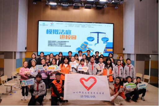 4月9日,法学院社会实践与志愿服务部前往成都市实验小学东部新区校区开展“模拟法庭进校园”法治教育活动。