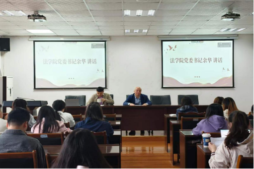 法学院本科生第一党支部于2026年4月21日在第六教学楼914会议室召开四月党组织生活,本次会议以“学习习近平总书记在《求是》杂志上发表的文章《树立和践行正确政绩观》”为主题,学院党委书记余华深入支部开展就业调研,全体党员参加。大会由党支部书记熊胤主持。